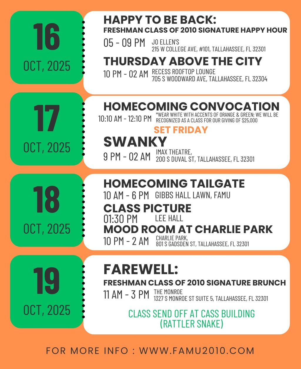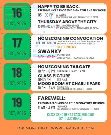 Mark your calendar for October 15th-19th, 2025 for five (5) days of memories to last you a lifetime. Seize this rare moment to reconnect with the people who shaped your journey!