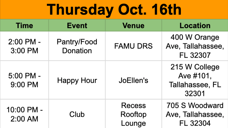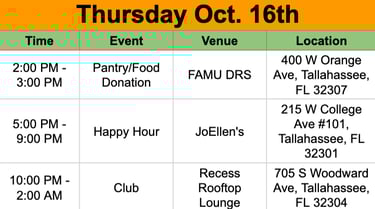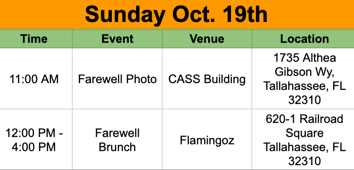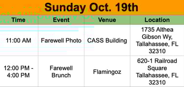 Our First day is Wednesday October 15, 2025 & our last day is Sunday October 19, 2025